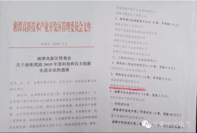 近日,湘潭高新區(qū)召開工委經(jīng)濟(jì)工作暨獎(jiǎng)勵(lì)大會(huì),世優(yōu)電氣作為高新區(qū)科技創(chuàng)新重點(diǎn)企業(yè),在此次表彰獎(jiǎng)勵(lì)會(huì)上滿載而歸,憑借“湖南省企業(yè)技術(shù)中心”、“湘潭市財(cái)源建設(shè)先進(jìn)單位”、“湘潭高新區(qū)知識(shí)產(chǎn)權(quán)優(yōu)勢(shì)企業(yè)”3塊金字招牌捧多個(gè)獎(jiǎng)項(xiàng)。